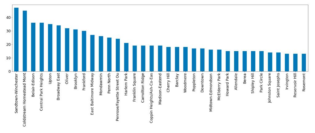 — максимум преступлений произошёл в день похорон Фредди Грея, афроамериканца, который скончался после задержания полицией. Причём основным преступлением была кража со взломом (как и позже в 2020 году после смерти от рук полицейского другого афроамериканца).